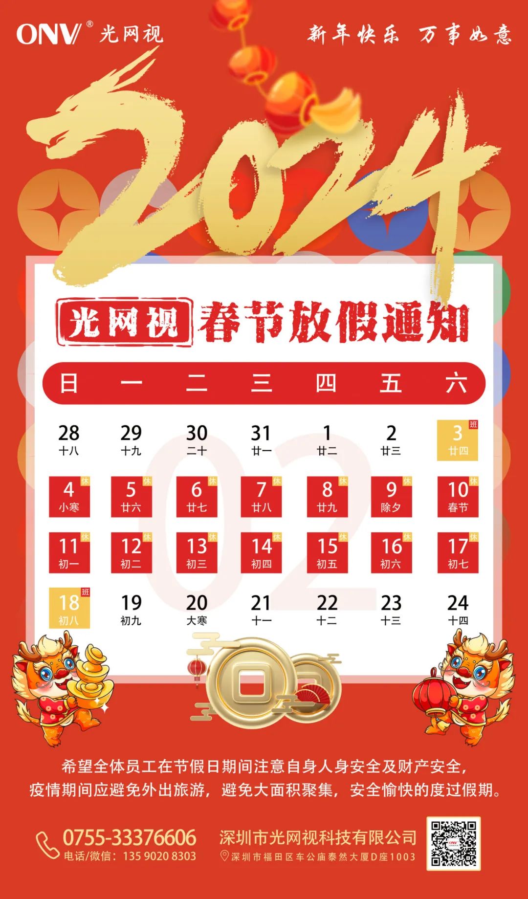 光網(wǎng)視春節(jié)放假通知:龍年新春,共享團(tuán)圓時(shí)光!