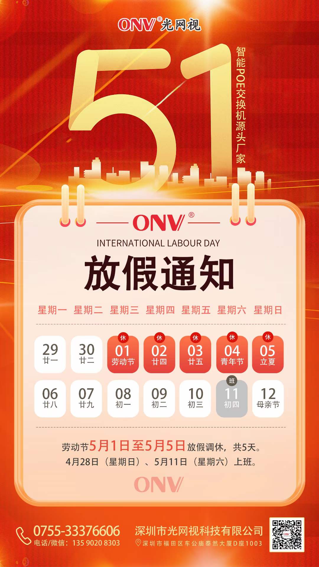 【ONV光網(wǎng)視】51勞動節(jié)放假安排