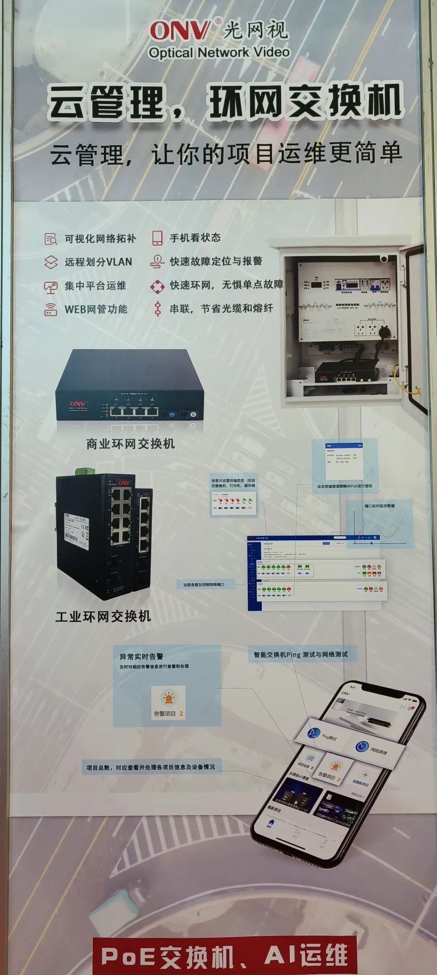 作為全球知名的POE交換機(jī)生產(chǎn)廠商和智能運(yùn)維箱生產(chǎn)廠家,以“云+端,智慧融合”為主題,集中展示了云管理環(huán)網(wǎng)交換機(jī)、智能POE交換機(jī)、工業(yè)交換機(jī)、智能運(yùn)維箱等眾多解決方案,展示了光網(wǎng)視科技的前沿科技智造實(shí)力。