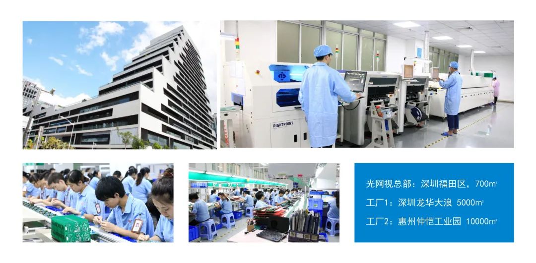 深圳市光網(wǎng)視科技有限公司(ONV),成立于2003年,簡稱光網(wǎng)視,立意為“光纖、網(wǎng)絡(luò)、視頻”,公司現(xiàn)有員工人數(shù):±360人,研發(fā)中心與營銷總部設(shè)立于深圳CBD福田區(qū)車公廟泰然大廈700+㎡,龍華大浪生產(chǎn)基地5000+㎡,惠州仲愷高新區(qū)生產(chǎn)基地10000+㎡,一個中心兩個制造基地。