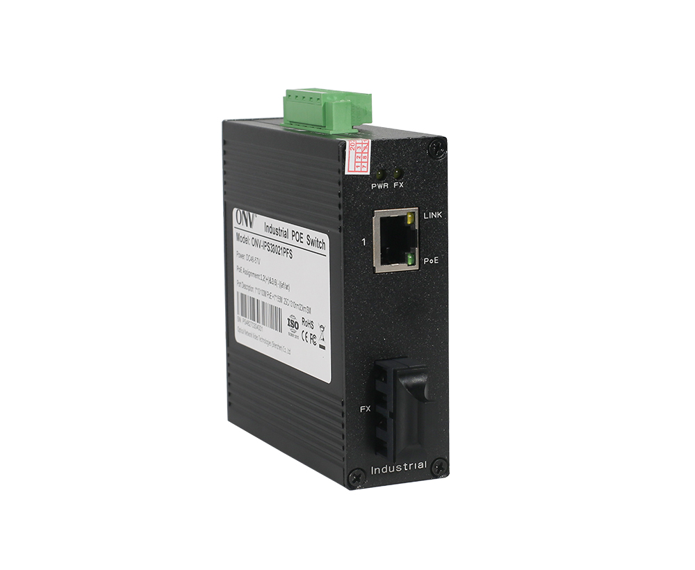 ONV-IPS33021PFS系列是ONV自主研發(fā)的全千兆工業(yè)PoE光纖交換機(jī),具備1個(gè)10/100/1000Base-T以太網(wǎng)電口+1個(gè)千兆SC單模雙纖光模塊(可選單模/多模,單纖/雙纖光模塊),其中網(wǎng)口支持IEEE 802.3af/at標(biāo)準(zhǔn)PoE供電,單端口PoE功率達(dá)30W。作為PoE供電設(shè)備,能自動(dòng)檢測識(shí)別符合標(biāo)準(zhǔn)的受電設(shè)備并通過網(wǎng)線為其供電??赏ㄟ^網(wǎng)線為無線AP、網(wǎng)絡(luò)攝像頭、工業(yè)傳感器等POE終端設(shè)備供電,滿足對高密度PoE供電有需求的網(wǎng)絡(luò)環(huán)境,適合智能交通、軌道交通、電力行業(yè)、礦業(yè)開采、石油、海運(yùn)、冶金及綠色能源建設(shè)等工業(yè)場景組建經(jīng)濟(jì)高效、穩(wěn)定、可靠的通信網(wǎng)絡(luò)。