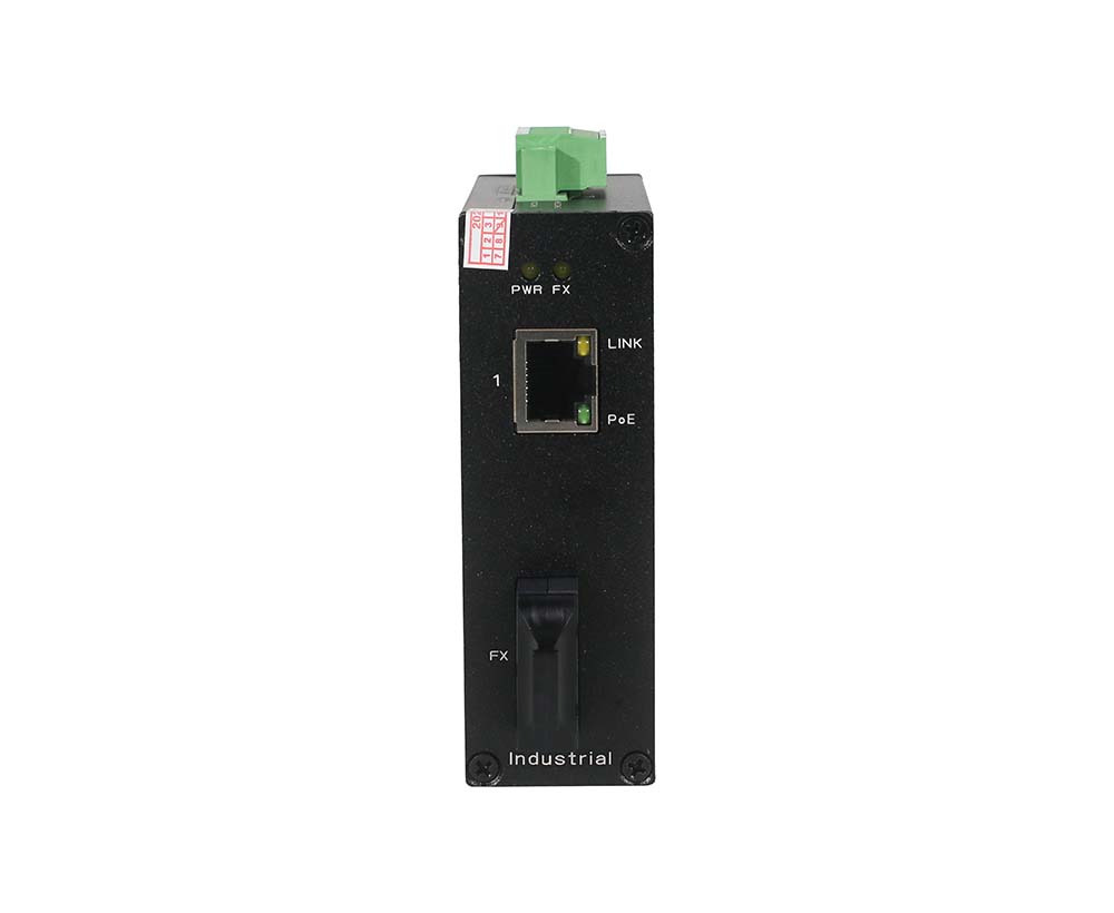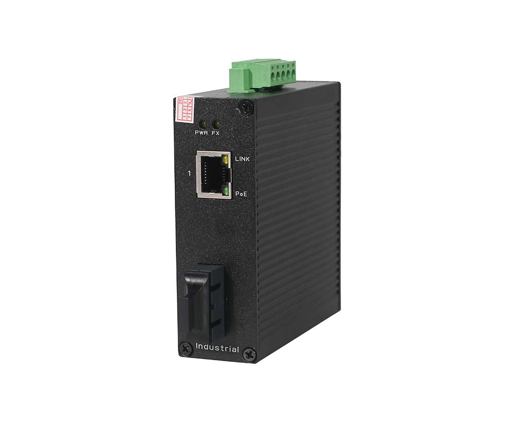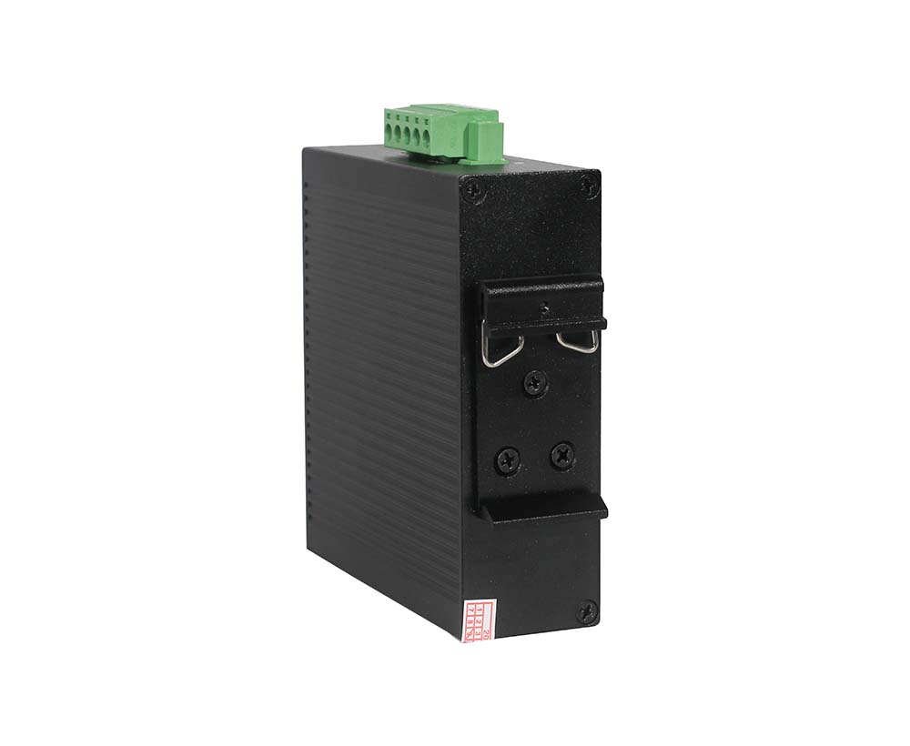非管理1個(gè)10/100/1000M RJ45端口+ 1個(gè)1000M上聯(lián)單模單纖(1310/1550nm)SC光模塊,工業(yè)POE光纖交換機(jī),其中網(wǎng)口支持IEEE 802.3af/at PoE國際標(biāo)準(zhǔn),支持雙DC冗余電源輸入(鳳凰端子連接),支持導(dǎo)軌式安裝。 |