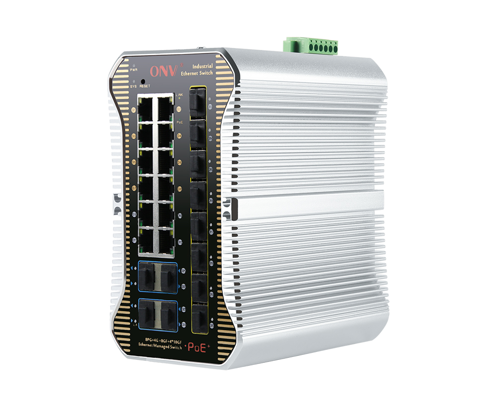 ONV-IPS38248PFM系列是ONV自主研發(fā)的萬兆上聯(lián)三層網(wǎng)管工業(yè)POE光纖交換機(jī),支持12個10/100/1000Base-T RJ45端口+8個100/1000Base-X SFP光口插槽+4個1/10G萬兆SFP+光口插槽,其中1-8端口支持IEEE 802.3af/at標(biāo)準(zhǔn)PoE供電,單端口PoE功率達(dá)30W。作為PoE供電設(shè)備,能自動檢測識別符合標(biāo)準(zhǔn)的受電設(shè)備并通過網(wǎng)線為其供電。可通過網(wǎng)線為無線AP、網(wǎng)絡(luò)攝像頭、網(wǎng)絡(luò)電話機(jī)、工業(yè)傳感器等POE終端設(shè)備供電,滿足對高密度PoE供電有需求的網(wǎng)絡(luò)環(huán)境,適合智能交通、軌道交通、電力行業(yè)、礦業(yè)開采、冶金及綠色能源建設(shè)等工業(yè)場景組建經(jīng)濟(jì)高效、穩(wěn)定、可靠的通信網(wǎng)絡(luò)。