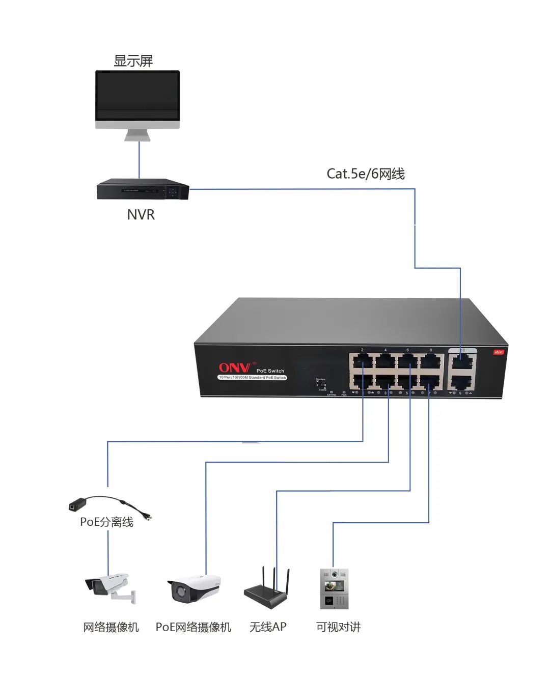 ONV-H1108PLS系列是ONV自主研發(fā)的非網(wǎng)管PoE交換機(jī),具備8個(gè)百兆電口+2個(gè)百兆上聯(lián)電口,其中1-8口支持IEEE 802.3af/at標(biāo)準(zhǔn)PoE供電。作為PoE供電設(shè)備,能自動(dòng)檢測識(shí)別符合標(biāo)準(zhǔn)的受電設(shè)備并通過網(wǎng)線為其供電。