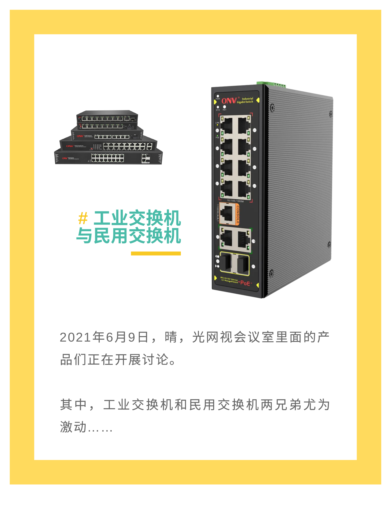 [Abstract]: 光網(wǎng)視會(huì)議室里面的產(chǎn)品們正在開展激烈的討論。其中,工業(yè)交換機(jī)和民用交換機(jī)兩兄弟尤為激動(dòng)……
